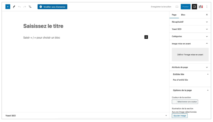 Saisissez ensuite le titre de votre page. Dans la majorité des cas, la page ne nécessite pas de paramétrage supplémentaire. Le cas contraire s’applique si la page doit faire partie d’une arborescence avec des pages parents et/ou des pages sœurs.