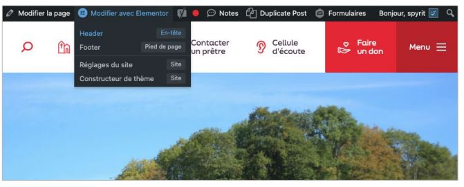 L’en-tête et le pied de page du site sont construits avec des modèles globaux Elementor. Ils sont affichés sur toutes les pages du site, donc leur édition doit être réalisée avec précaution.