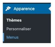Pour accéder aux menus, cliquez sur le sous-onglet “Menus” de l’onglet “Apparence” de la barre latérale (interface d’administration).