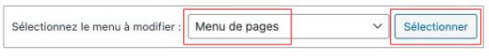 Choisissez dans la liste déroulante le menu sur lequel vous souhaitez intervenir et cliquez sur le bouton “Sélectionner”.